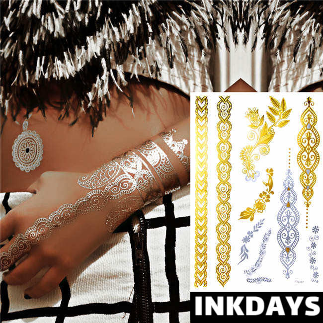 Test how this metallic tattoo suits you and discover which style suits you! You apply the fake tattoos easily, are water-resistant and last for several days - ideal as a unique accessory for occasions such as festivals and weddings.